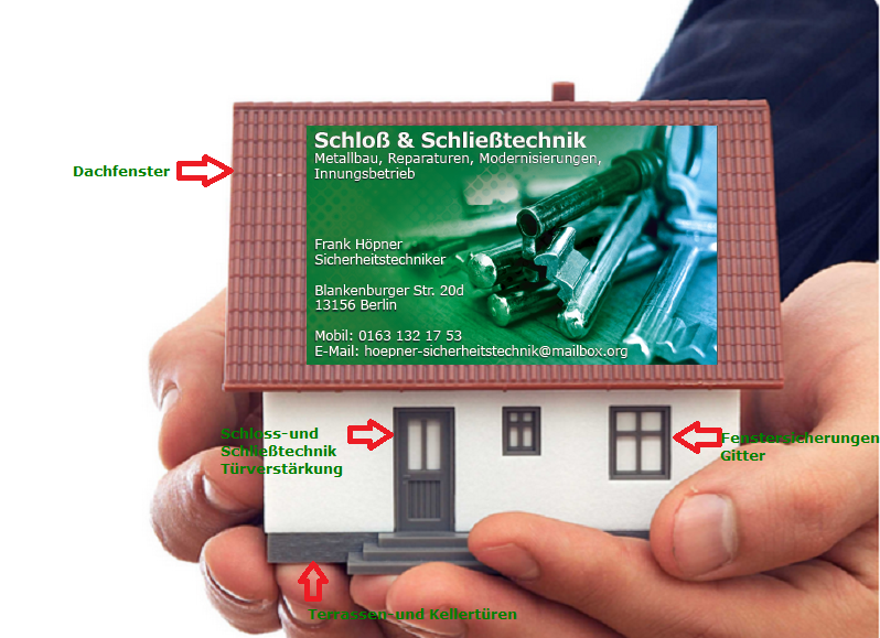 Als Berliner Fach-und Innungsbetrieb bieten wir Ihnen eine Absicherung Ihres Hauses, Ihrer Wohnung, Ihres Eigentums auf dem aktuellen Stand der Technik. Seriöse Auftragsabwicklung, solides Handwerk, sowie umfassender Service mit viel Liebe zum Detail sind selbstverständlich.